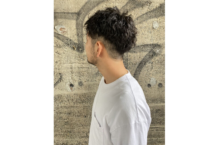 スパイラルパーマツーブロック 刈り上げ 短髪 メンズ パーマ